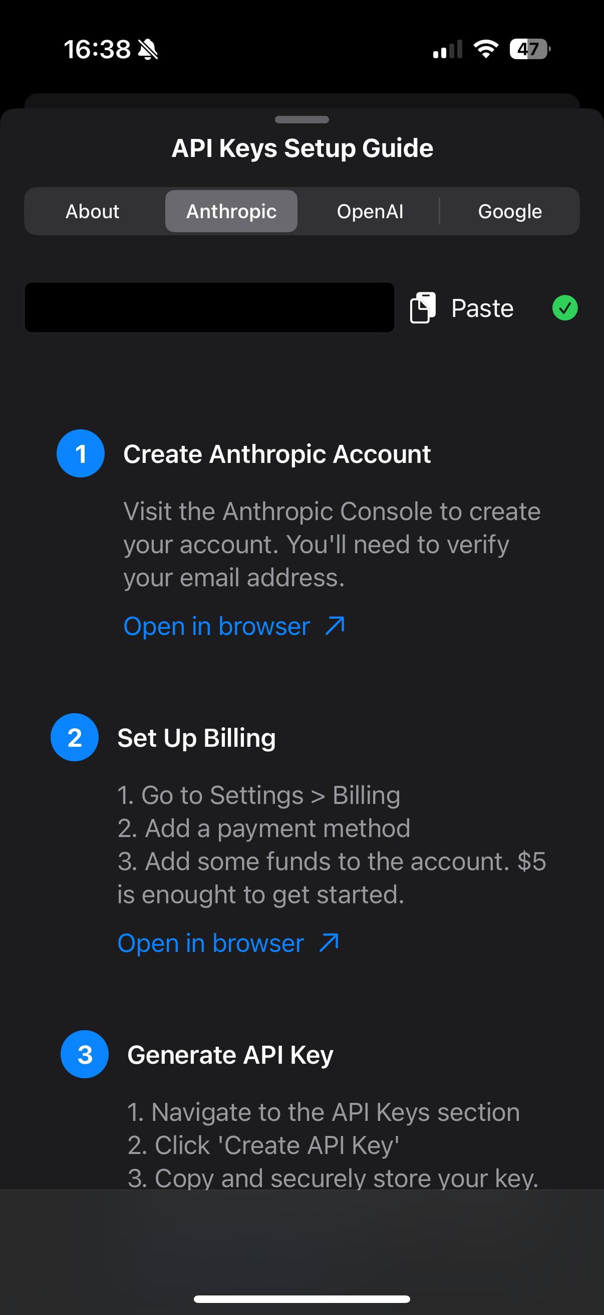 - Choose your AI services (Anthropic, OpenAI, and paid or free versions of Google Gemini supported)